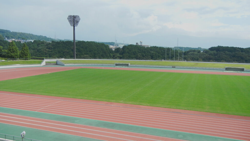 愛鷹広域公園内にある陸上競技場です。球技場としても使用されており、サッカークラブのアスルクラロ沼津がホームゲームを開催しています。